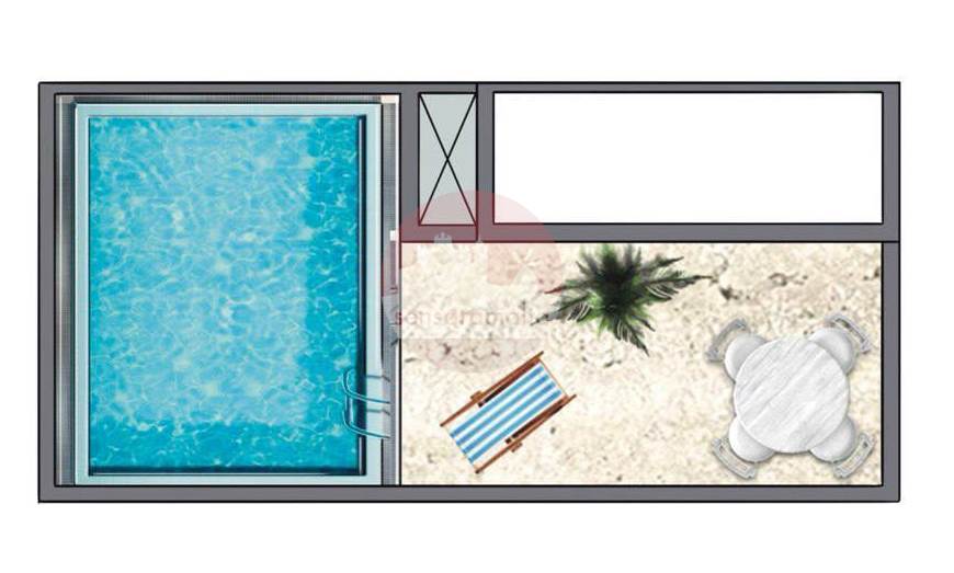 This property enjoys a walk in wardrobe, bathroom and an open living/kitchen/dining with a huge front and back terrace. At roof level one finds a large pool and garden which pool and garden are only accessible from the penthouse).