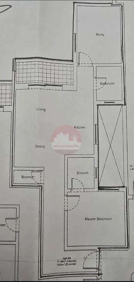 Upon entering one finds a hallway leading to a box room, dining/kitchen/living, master bedroom ensuite, main bathroom, study and a balcony.