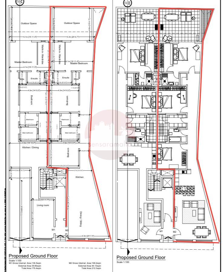 the maisonette has a circa of 220 sqm and it is being sold finished excluding internal tiles, bathrooms and internal doors.
