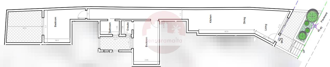 This elevated maisonette consists of a front private terrace, a front open plan, 2 double bedrooms, on the side of which the main bedroom is also served with a balcony and ensuit , a master bathroom, and a back yard.