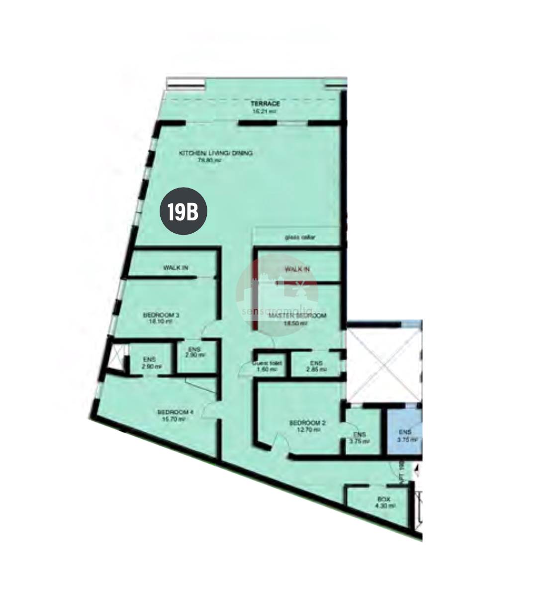 This 4 bedrooms 2nd Floor Apartment enjoys a front terrace and a spacious open plan K/L/D. All the 4 double bedrooms enjoy an ensuite and two of the bedrooms also come with a walk-in wardrobe. The kitchen is situated at the front overlooking the terrace.