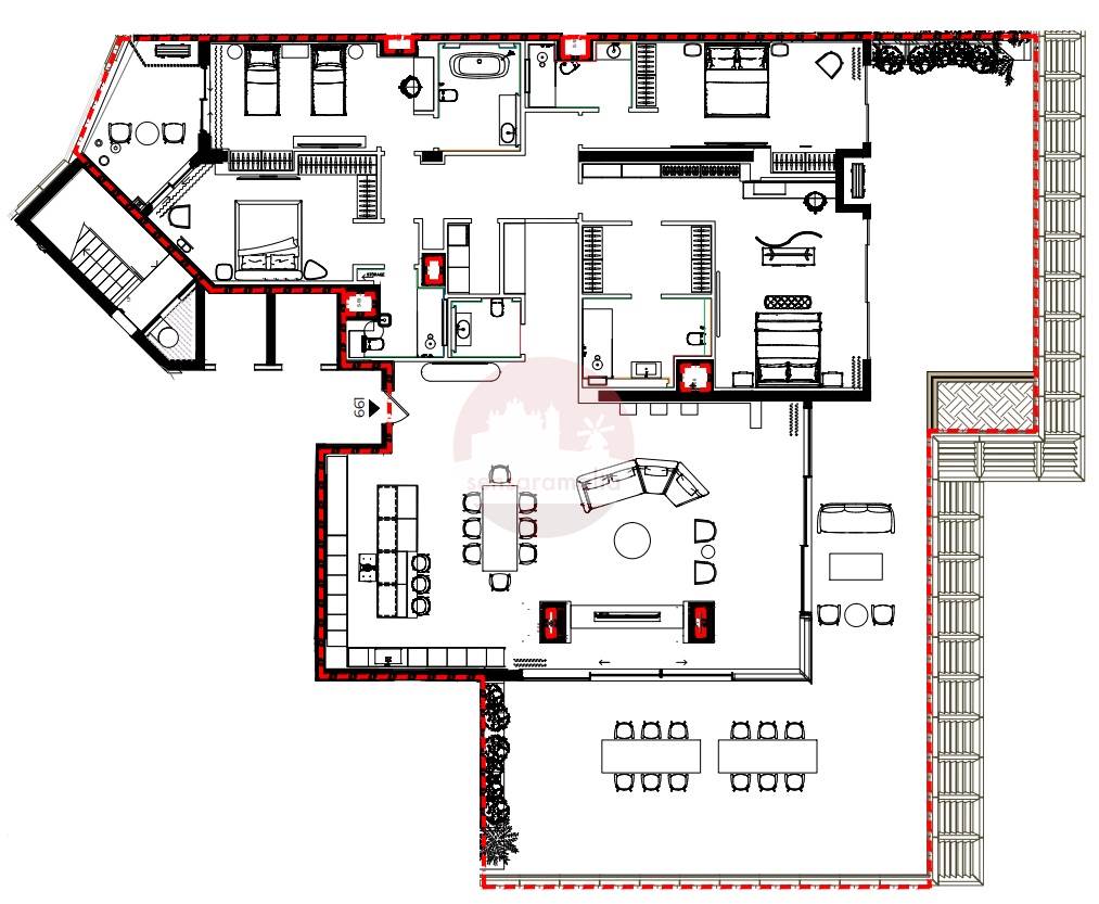 Consists of an open plan kitchen/dining/living with a terrace, four-bedrooms, each with their own ensuite bathroom, walk-in-wardrobe, a laundry room, and a main bathroom.