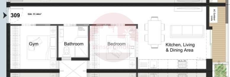 The layout consist of an open-plan kitchen/ living/ Dining area followed by good size front balcony, main bedroom, main bathroom and a study room.