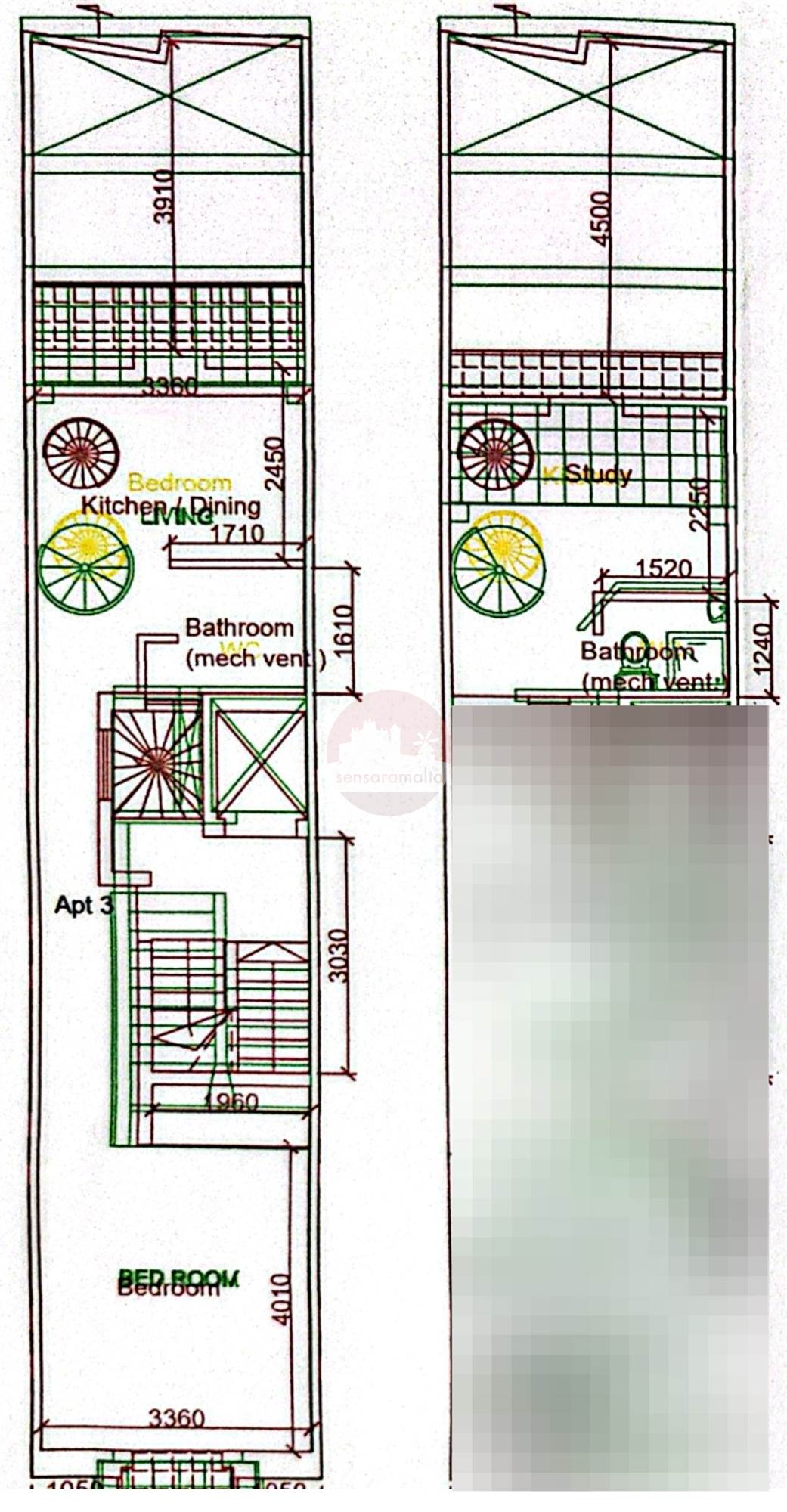 Seconds away from Msida front comes a third floor duplex apartment being offered fully finished. Upon entering one finds a bathroom, kitchen/living/dining/balcony and a bedroom with a back balcony. A spiral stairway leads to the study also with a back balcony.