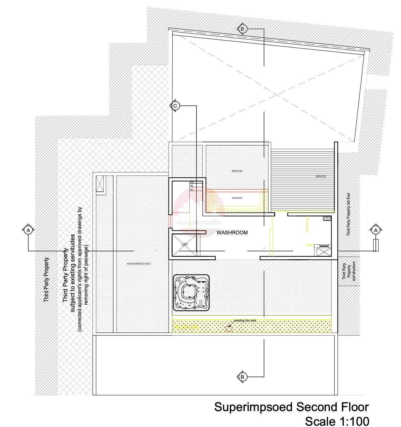The roof level is designed for relaxation and entertaining, featuring a Jacuzzi area with ample space for outdoor enjoyment.