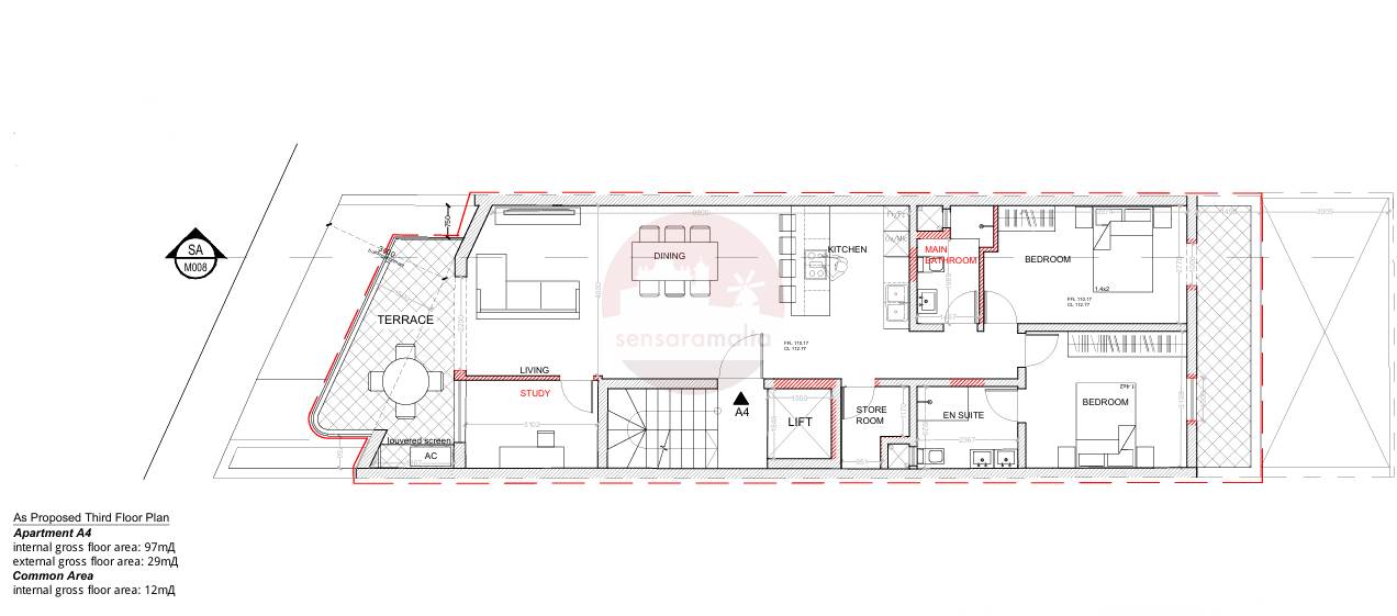 Fgura - On Plan 2 Bedroom + Study Finished Apartment + Front Terrace & Back Balcony