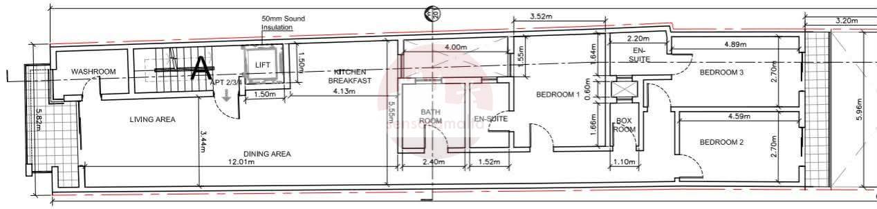 Comprises of spacious open plan kitchen/dining/living with a front terrace, a box room, a washroom, main bathroom and three bedrooms. Master bedroom includes an ensuite bathroom and second bedroom includes a balcony and a walk-in-wardrobe.