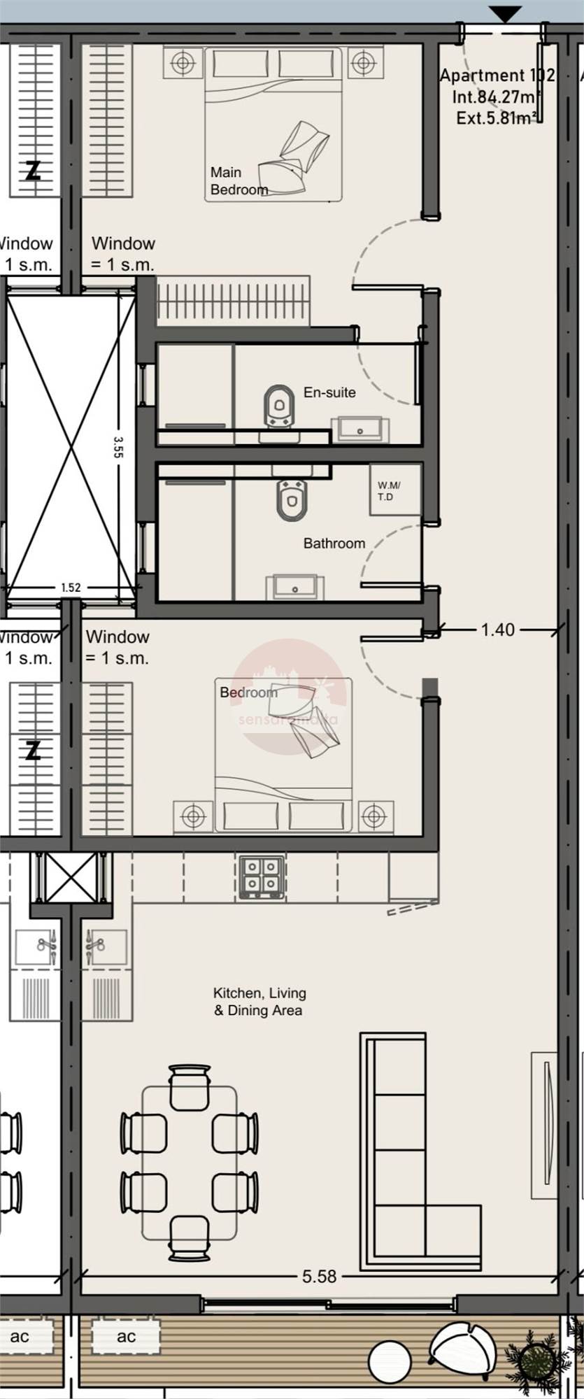 Msida - 2 Bedroom Fourth Floor Finished Apartment On Plan