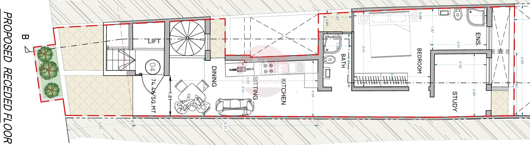 The layout consist of a front longish open plan served with terrace , pantry, small internal balcony, main bathroom, main bedroom served with open ensuit back balcony and a study room which can be used as single bedroom.