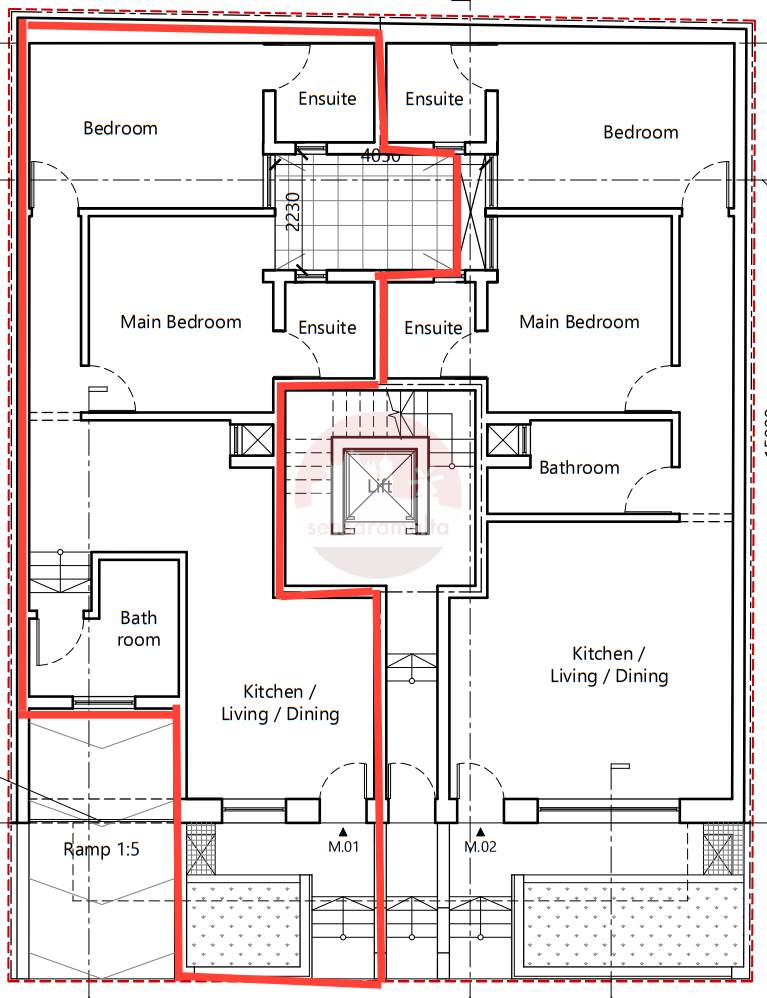The layout comprises of a front terrace , a kitchen living dining room upon entrance, main bathroom, 2 double bedrooms both served with ensuit .