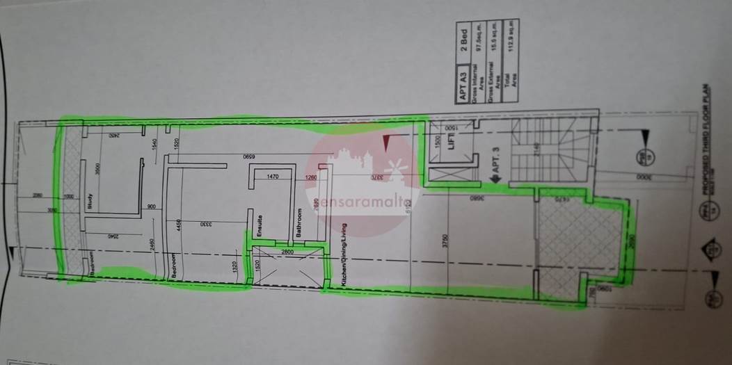 Gzira - 1st Floor 116sqm 3 Bedroom Finished Apartment (Under Construction)