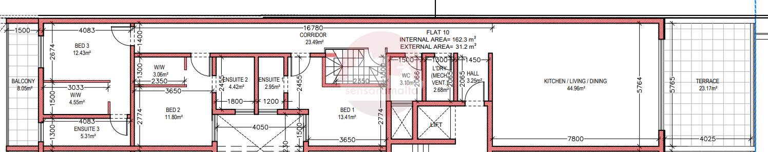 Mosta - 3 Bedroom Finished Penthouse On Plan