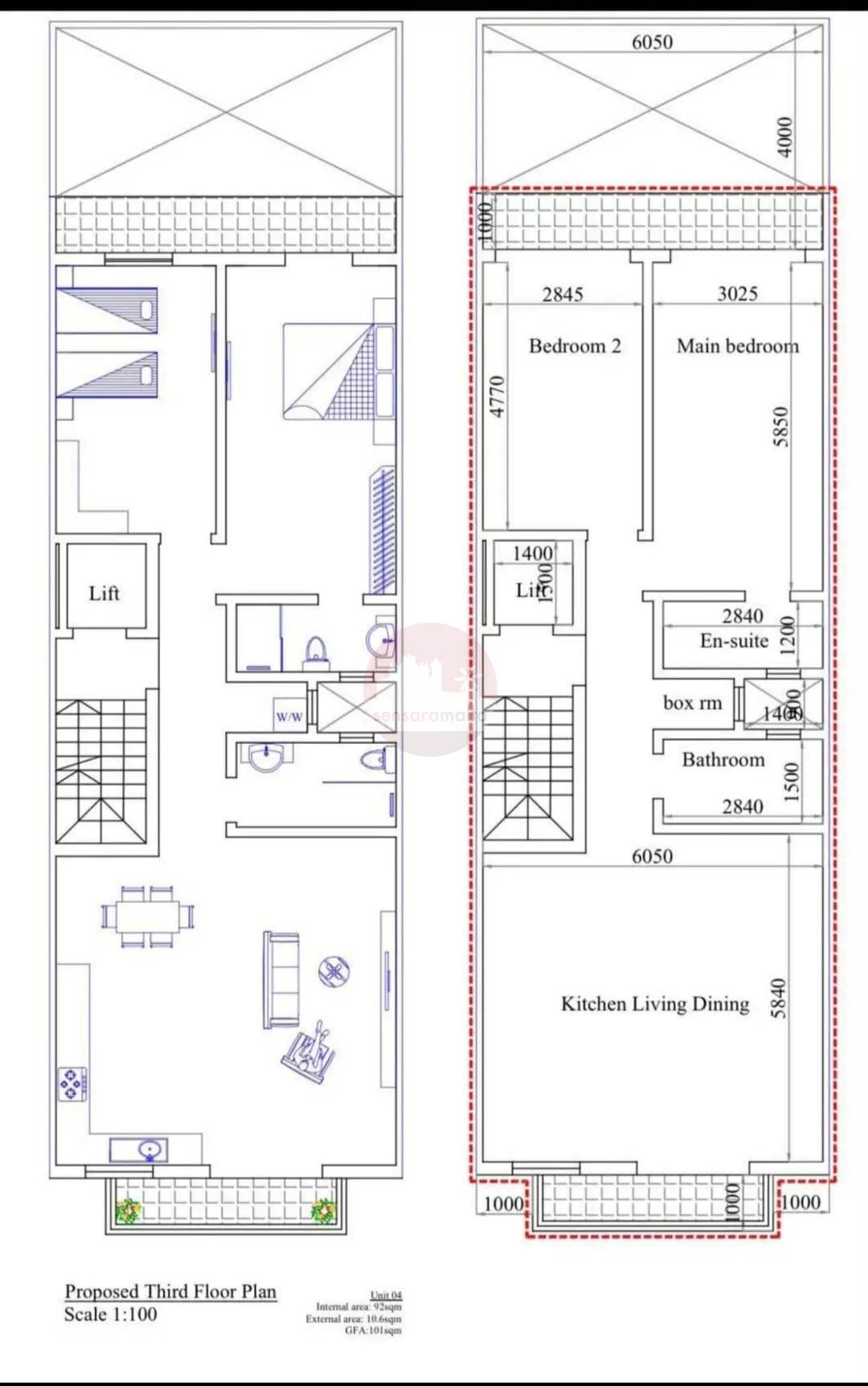 Property consist of kitchen/living/dining area on entrance and a front balcony, main bathroom, box room and 2 double bedrooms at the back with main enjoys an en-suite bathroom and both of them have the access for a good sized back terrace.